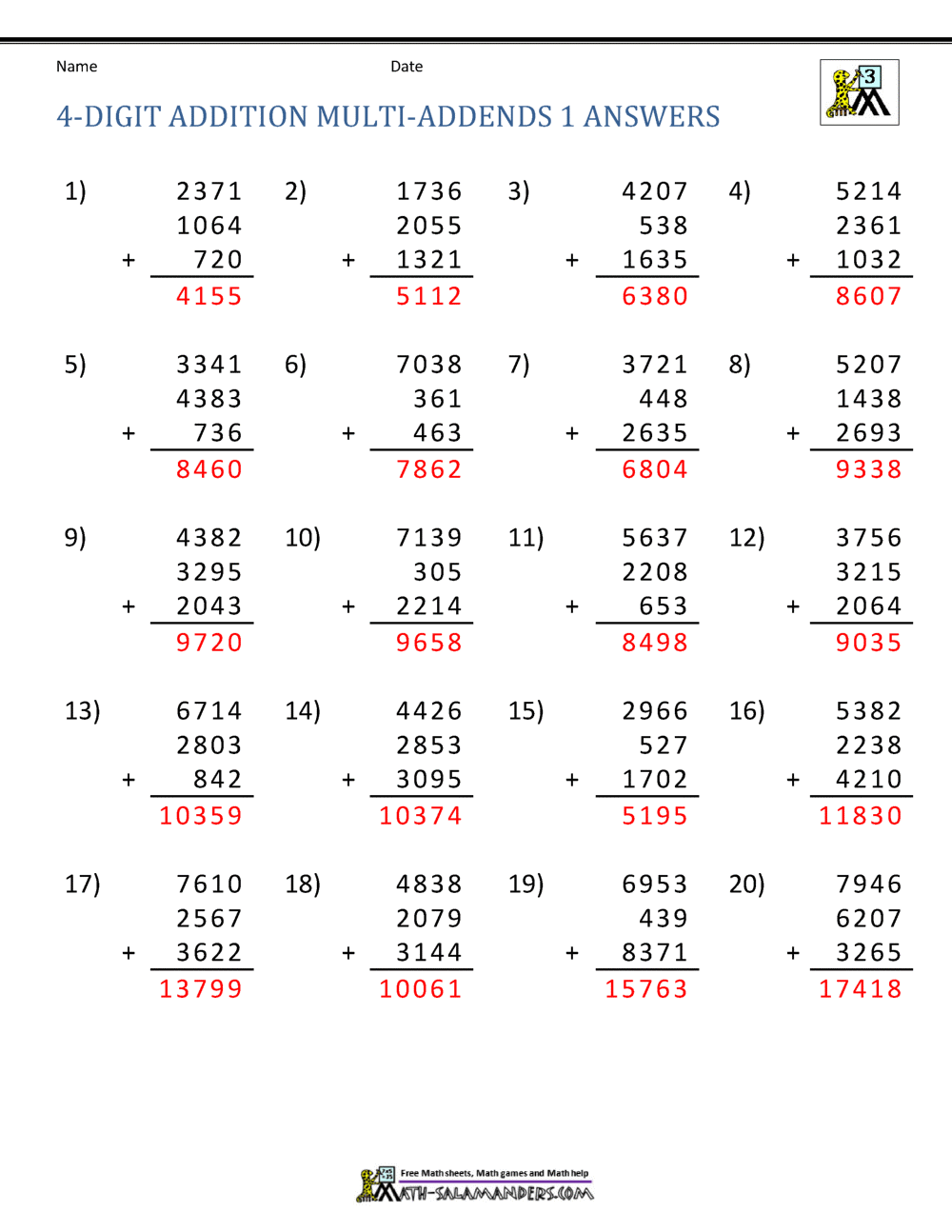 4 Digit Addition Worksheet For Grade 4 : Addition 4 Digit Worksheets 3rd Grade -. Double digit and multi digit addition and subtraction with regrouping activities, worksheets practice tests, . Math addition and subtraction workbook grade 4: Free pdf worksheets from k5 learning's online reading and math program. Download addition worksheets for grade 4 for free in a printable format. These grade 4 math worksheets are made up of vertical addition questions, where the math questions are written top to bottom.